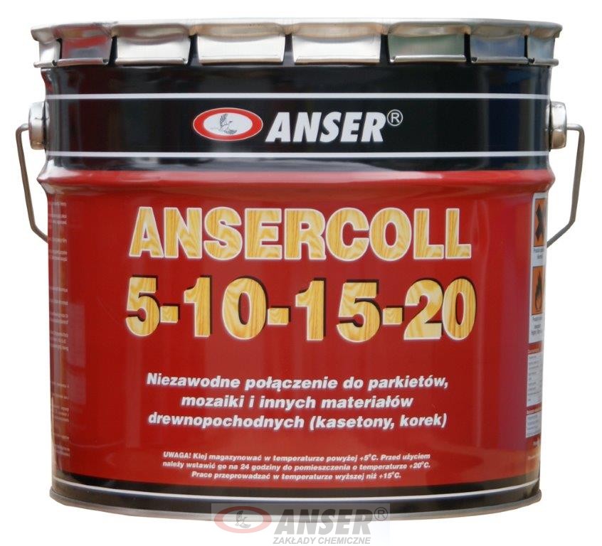 Klej do parkietów ANSERCOLL 5-10-15-20 produkowany jest na bazie modyfikowanego kauczuku styrenowo-butadienowego z dodatkiem żywic naturalnych.